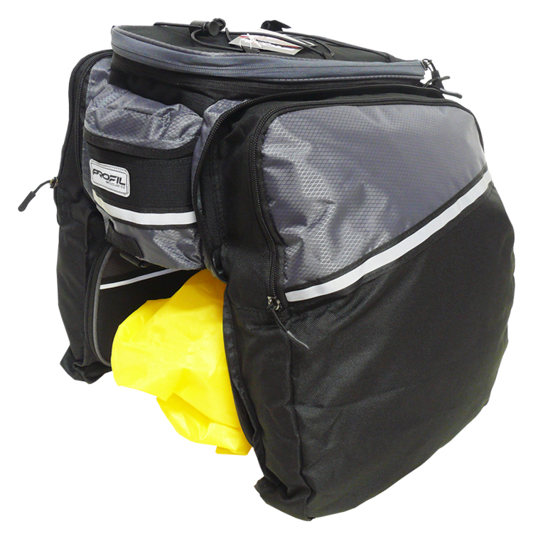 Pětikapsá s reflexními prvky. Brašna má integrované zozepínací bočnice. Součástí je ingrovaná pláštěnka.